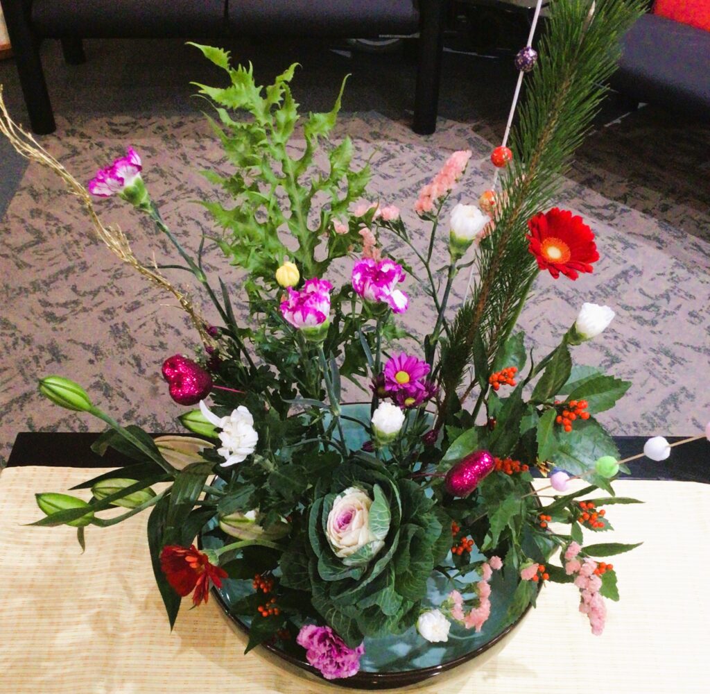 ロビーには、パッと目を引くお正月Artを飾りました!!